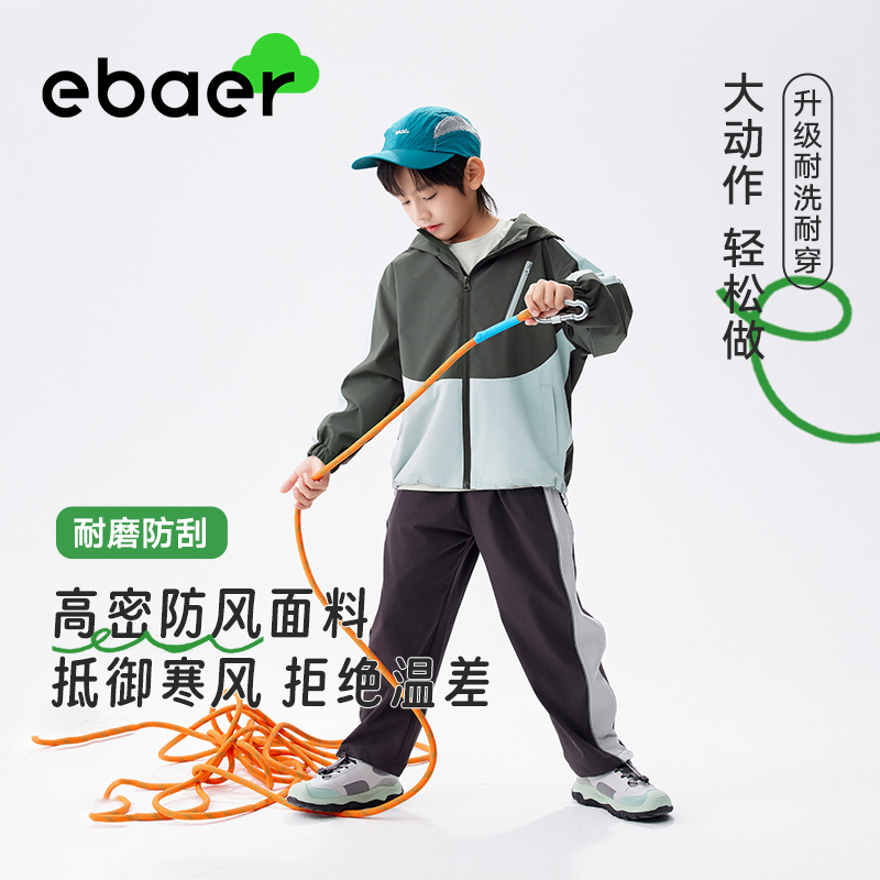 撞色连帽防水上衣潮 2025新款 ebaer儿童冲锋外套童装 户外男童春装