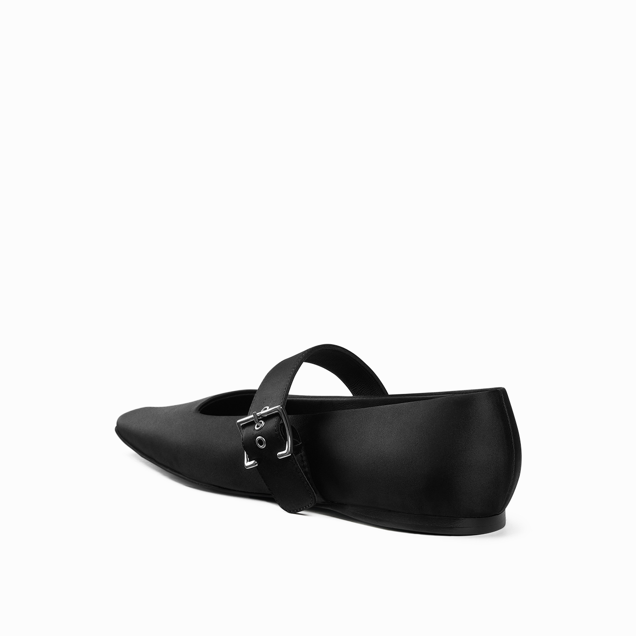 甜美复古玛丽珍软底女鞋 烫黑色缎面方头一字带平底鞋 2025春夏新款