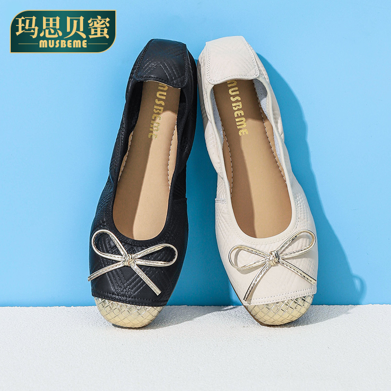 新款 女鞋 女士温柔蝴蝶结浅口单鞋 淑女平底单鞋 法式 热风2025年夏季