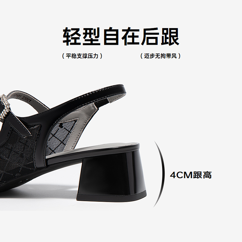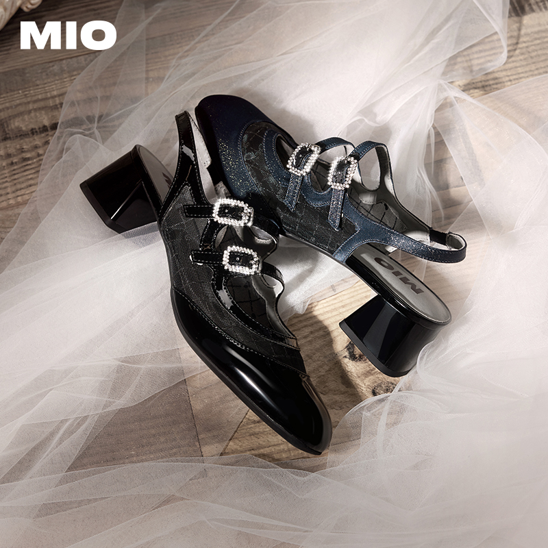 甜美可爱风舒适半凉鞋 MIO米奥2025夏季 凉鞋 复古闪钻圆头时装 新款