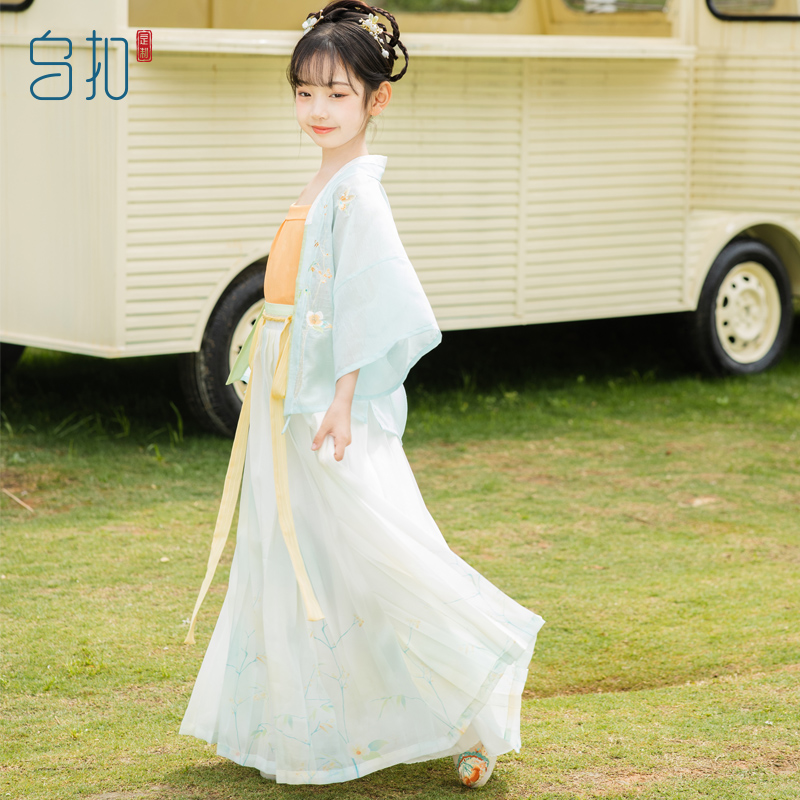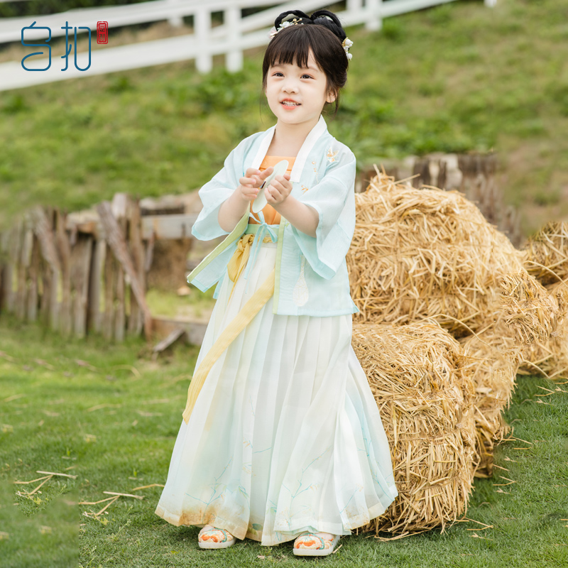 夏季 乌扣. 宋制对襟套装 儿童中国风改良古装 春夏 宋词女童汉服夏款