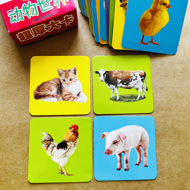 3岁儿童加厚撕不烂益智玩具动物词语防水防撕宝宝幼儿园看图认动物图片小孩认动物世界图书 宝宝看图认动物世界卡片早教卡片
