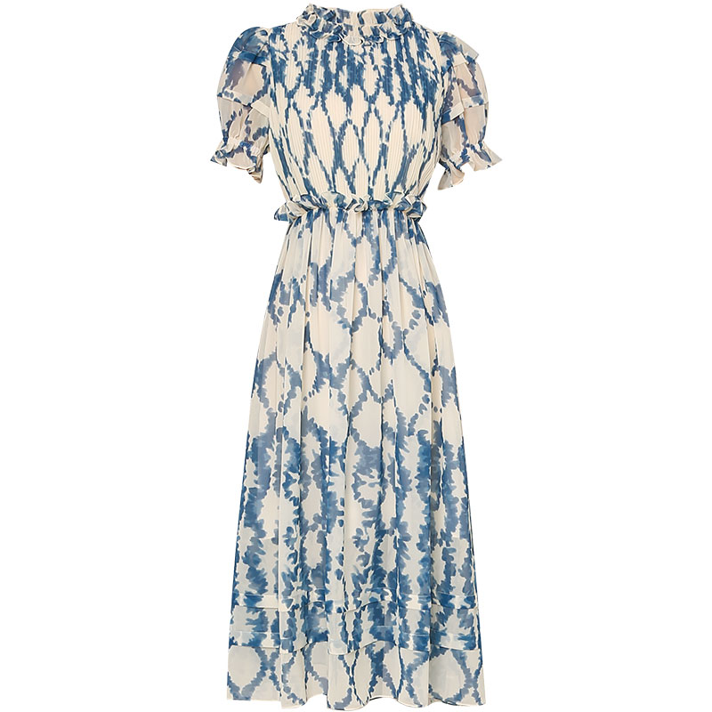 法式 2025年新款 温柔风收腰显瘦长裙 连衣裙女夏季 超仙气荷叶边短袖