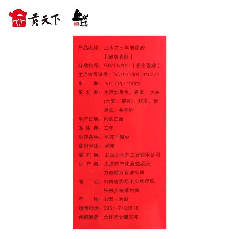 粮食酿造特产礼盒醋团购送礼批发 山西特产上水井老陈醋 300ml