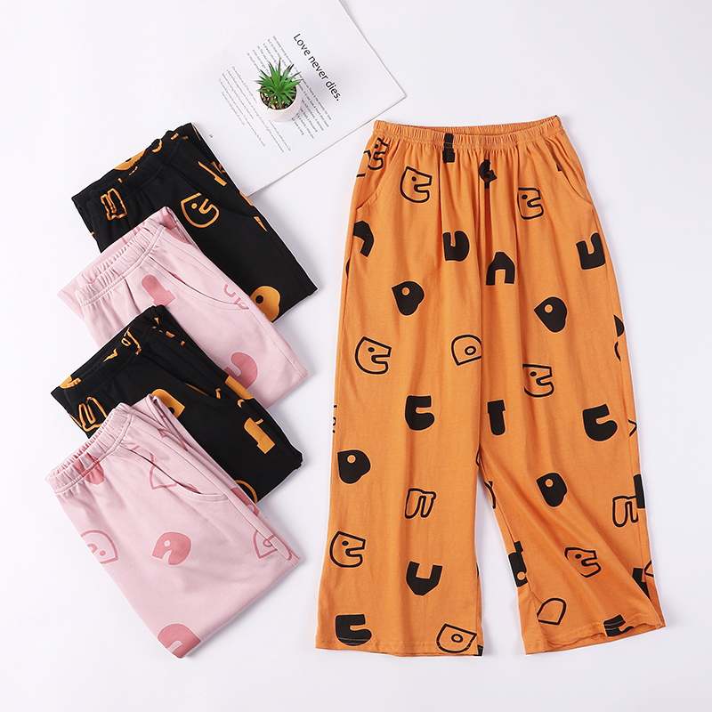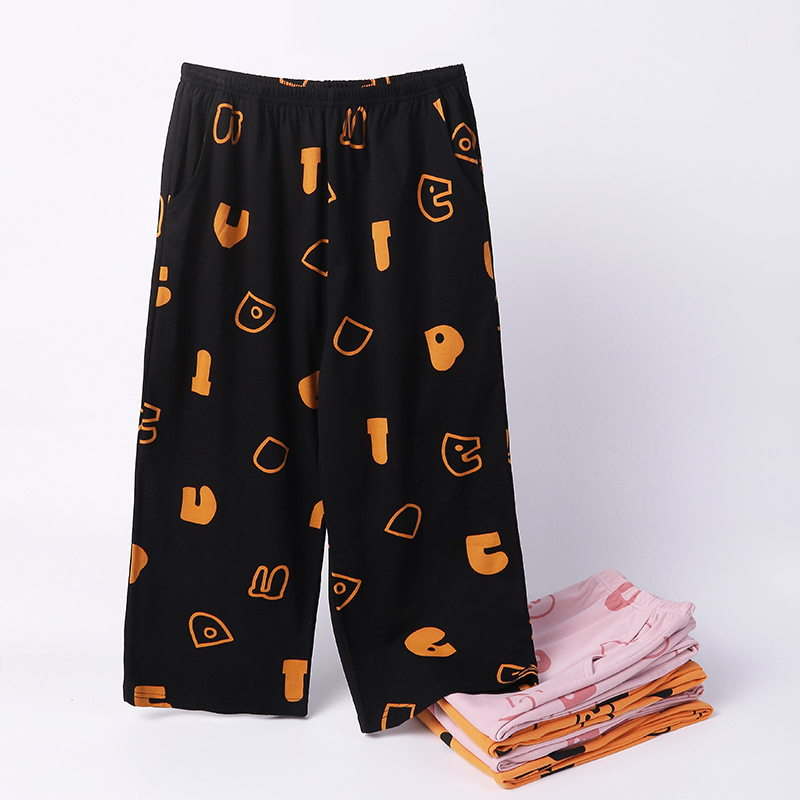 七分裤 可外穿全棉家居裤 女士春夏休闲薄款 夏季 宽松八分裤 纯棉睡裤