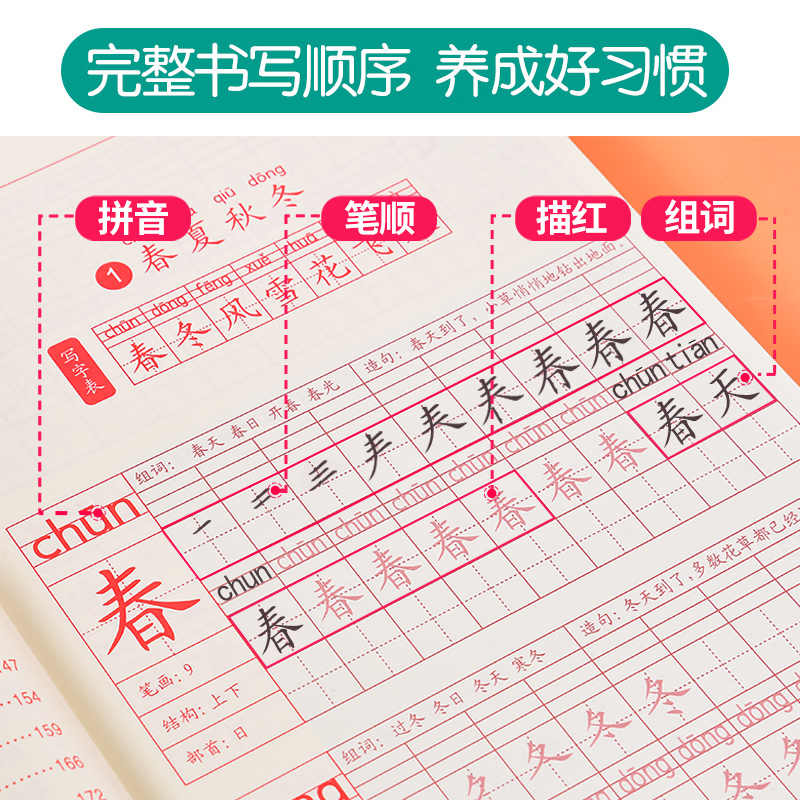一年级练字字帖小学生专用同步人教版 语文生字上册下册练字本描红每日一练二年级三儿童楷书硬笔书法临摹笔画笔顺练字帖练习写字贴