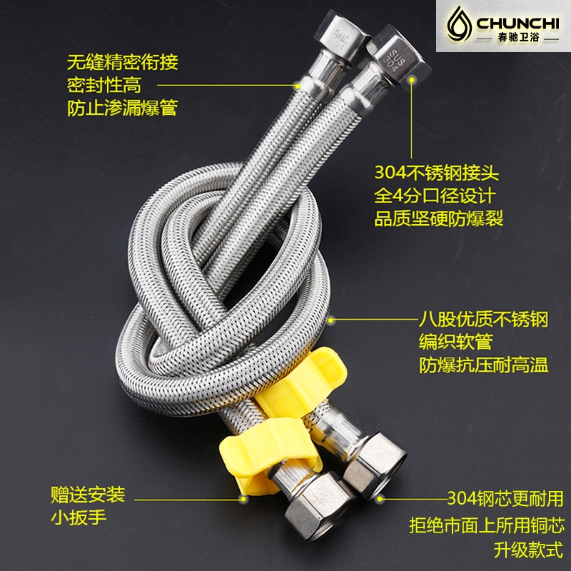 马桶热水器进水软管304不锈钢金属冷热水管高压防爆连接管4分家用