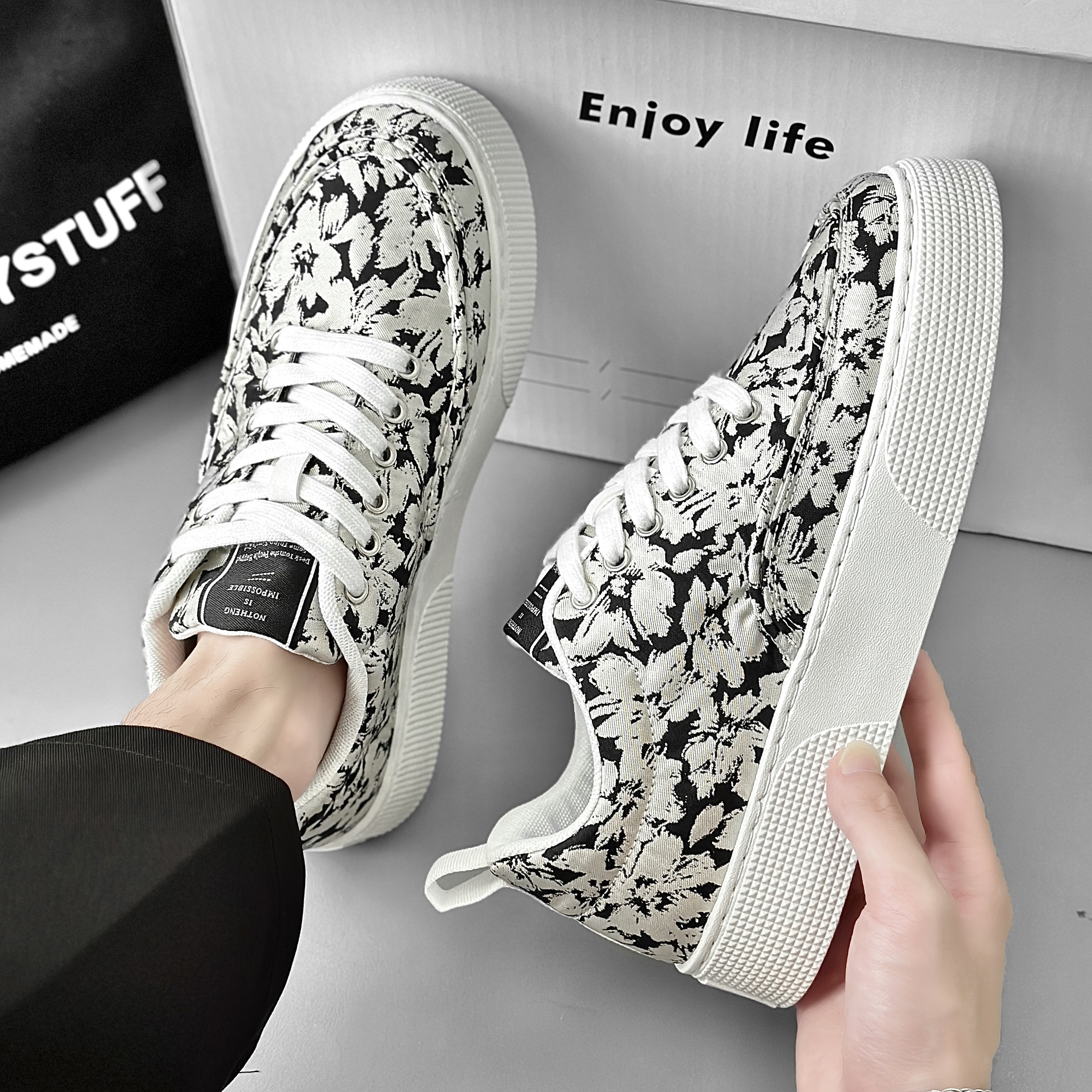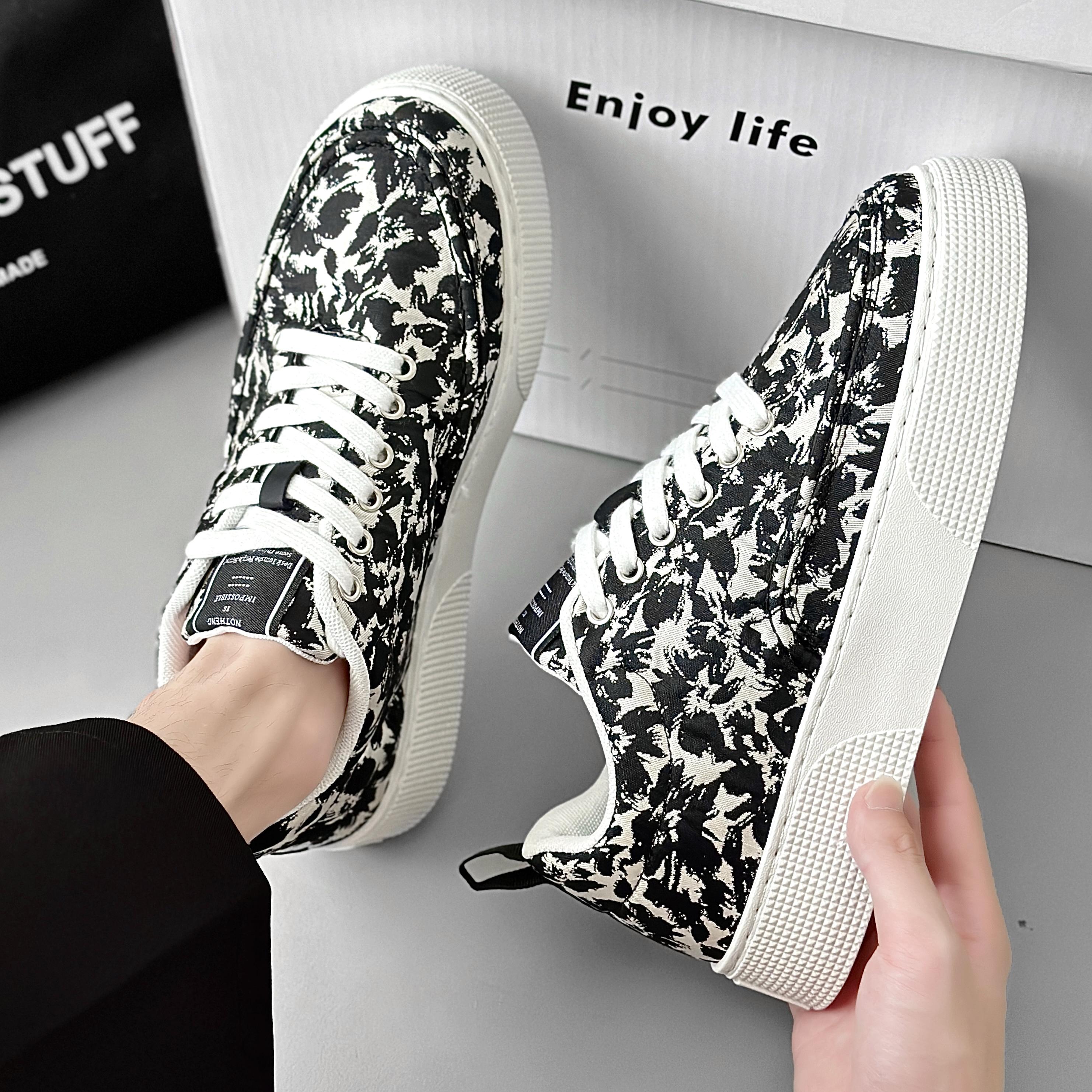 顽刻官方豹纹印花春季 校园风W系列帆布拼接低帮男女国潮滑板鞋