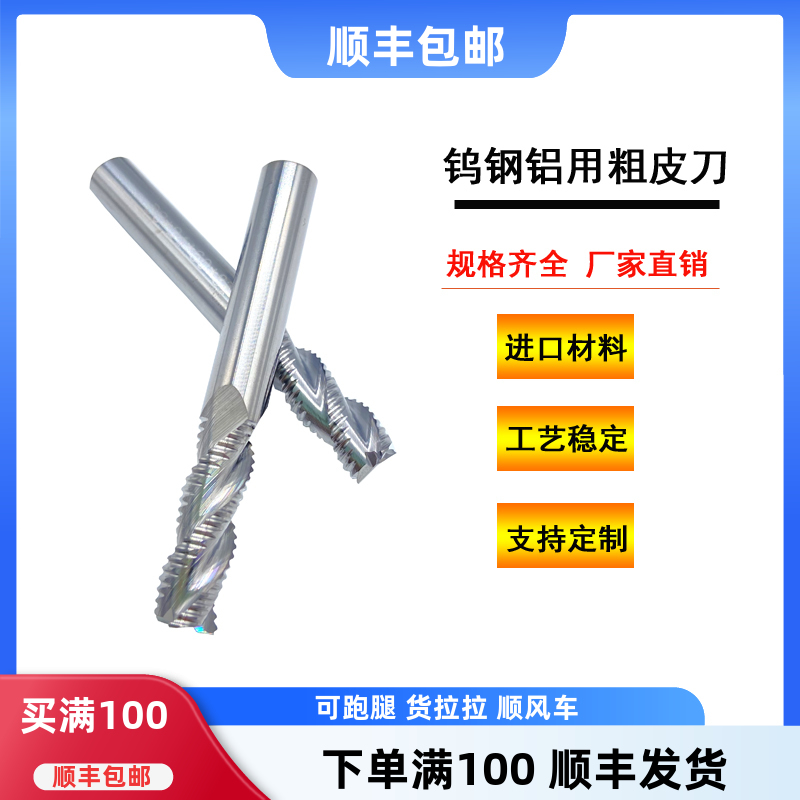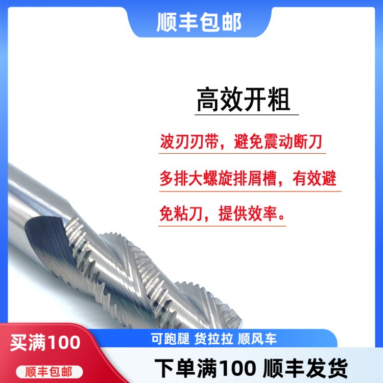钨钢铝用粗皮开粗铣刀3刃粗皮刀铝用开粗加长波刃纹粗皮立铣刀CNC