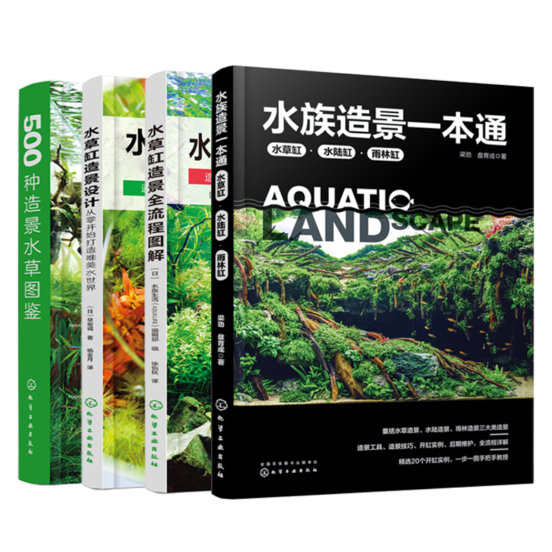 500种造景水草图鉴 水草缸造景设计 水草造景艺术鱼缸草缸造景书籍 水草缸造景全流程图解 全4册水族造景一本通水草缸水陆缸雨林缸