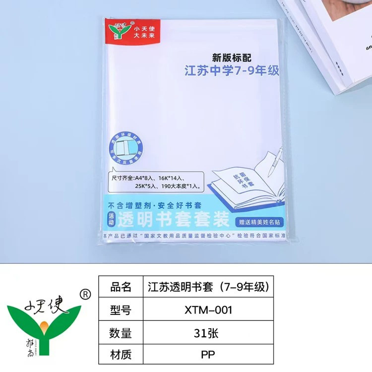 初中小学生透明书皮语文数学英语本凤凰江苏省一二三四五六七八九年级作业本中学生练习本中性笔黑色橡皮修正带无线装 订本透明书套