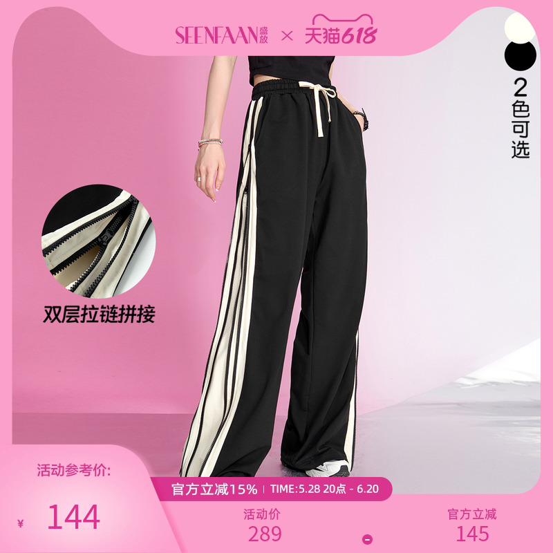 针织混纺侧边拉链撞色梭织长裤 新款 女 夏季 SEENFAAN盛放辣妹美式
