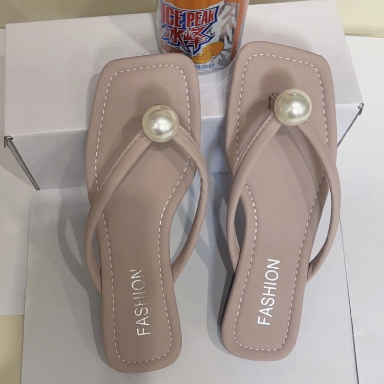 女珍珠罗马凉拖鞋 夹趾凉拖鞋 银色平底拖鞋 外穿人字拖法式 女夏时尚