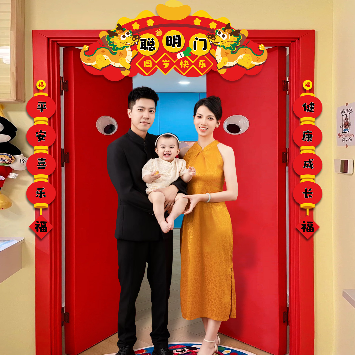 聪明门龙宝宝一周岁生日仪式 饰场景过葱门拍照布置 感抓周礼道具装