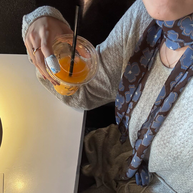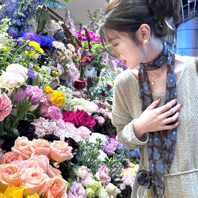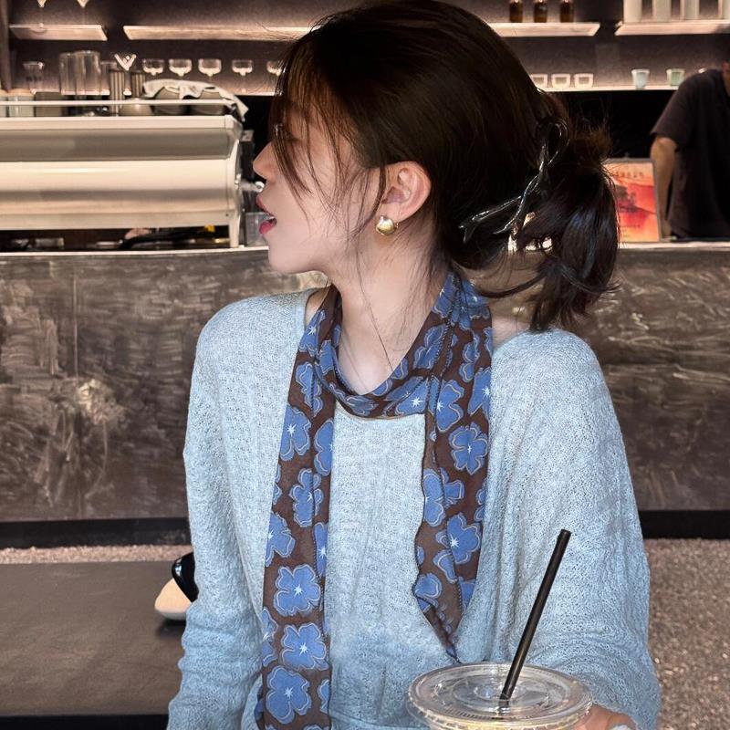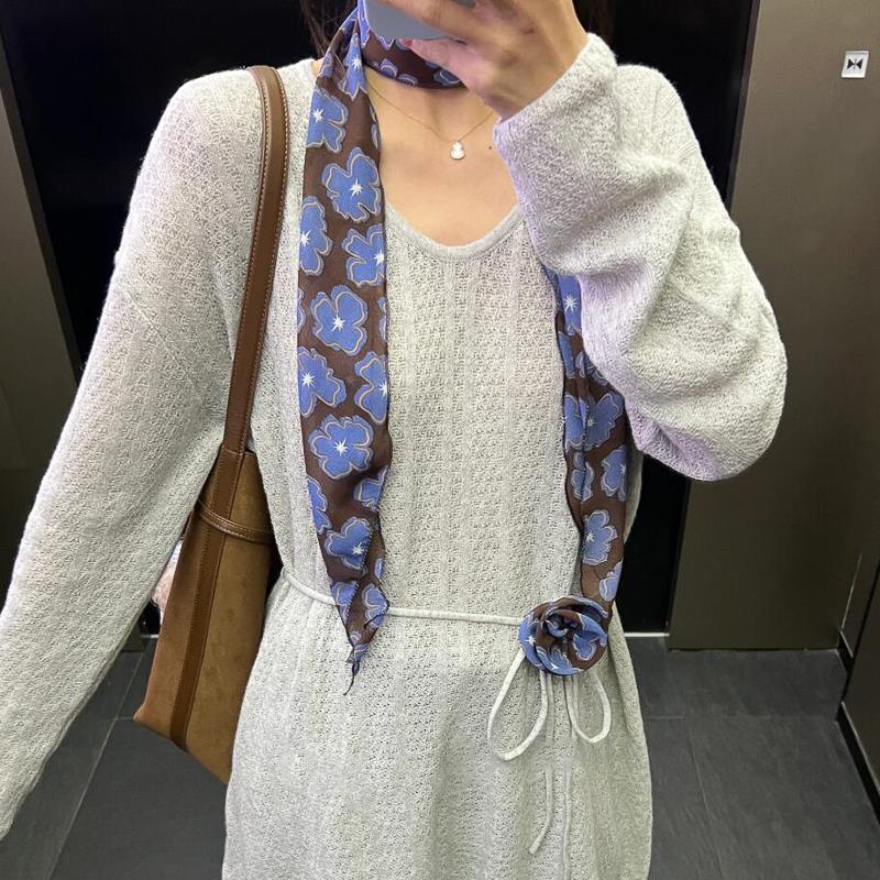 蓝色花朵丝巾寄脖丝带脖子配饰春夏新款 围脖2025高级感百搭精致女