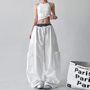 设计感工装 宽松直筒阔腿双腰头运动裤 裤 新款 女夏季 超火2025美式