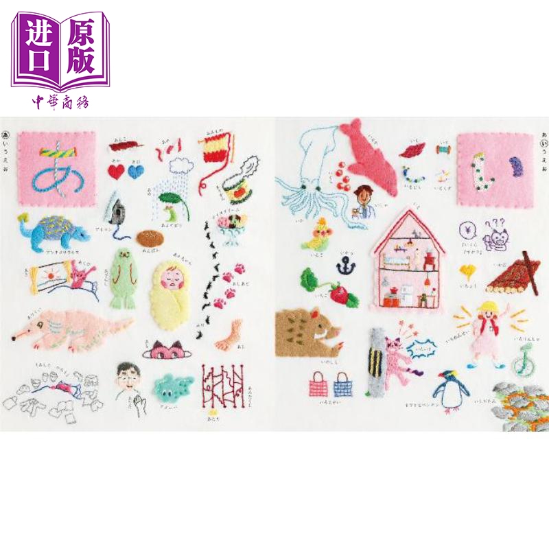 えほん 日文原版 中商原版 ことばとあそぶ いとでえがいた あいうえお ちくちく 日韩 儿童日语启蒙 五十音图刺绣拼布绘本书