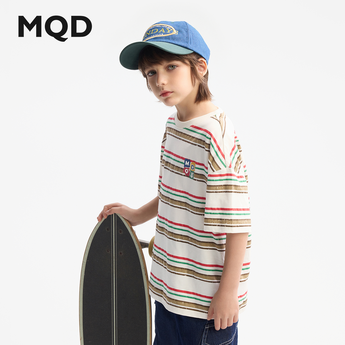 儿童宽松条纹短袖 MQD童装 新款 T恤2025夏装 中大童T恤 男童纯棉短袖