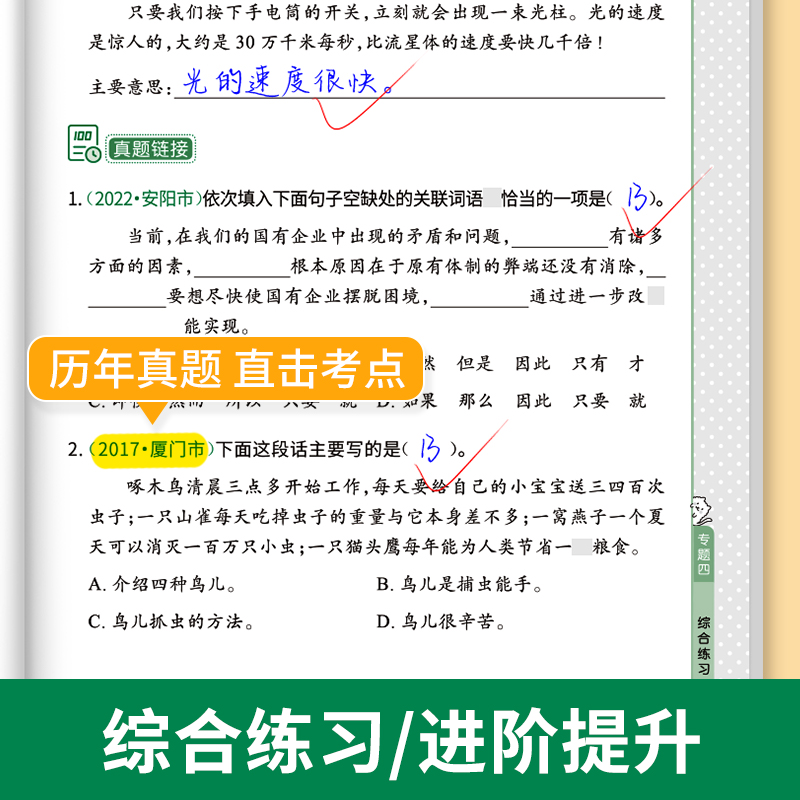 小学生语文句子衔接和概括专项训练一二三四五六年级人教版 小升初关联词造句句子排序词语积累大全高分突破练习册病句修辞习题本
