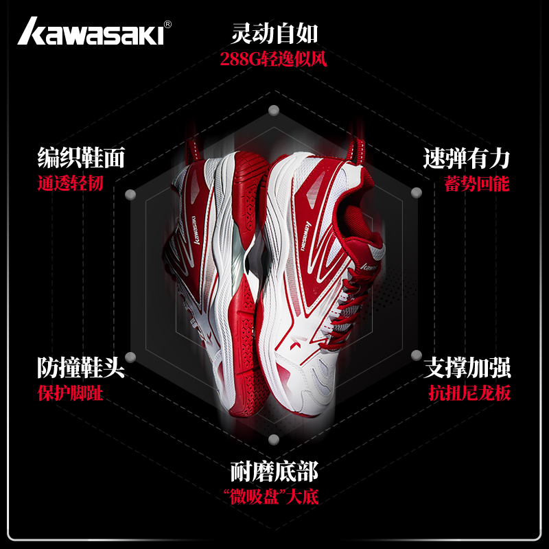 Kawasaki川崎光影专业羽毛球鞋 子 男女透气轻便防滑缓震耐穿运动鞋