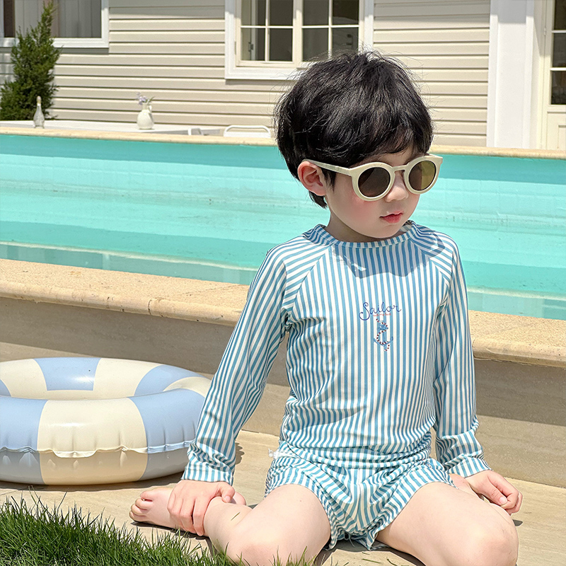 游泳衣 宝宝儿童长袖 新款 速干防晒男童泳衣连体中小童条纹分体泳装