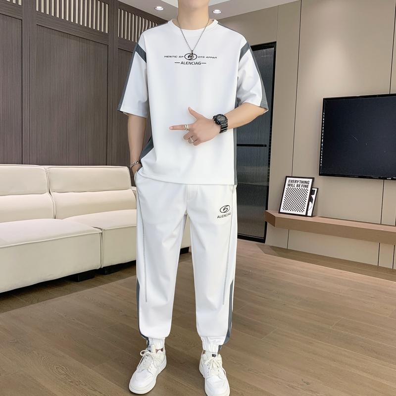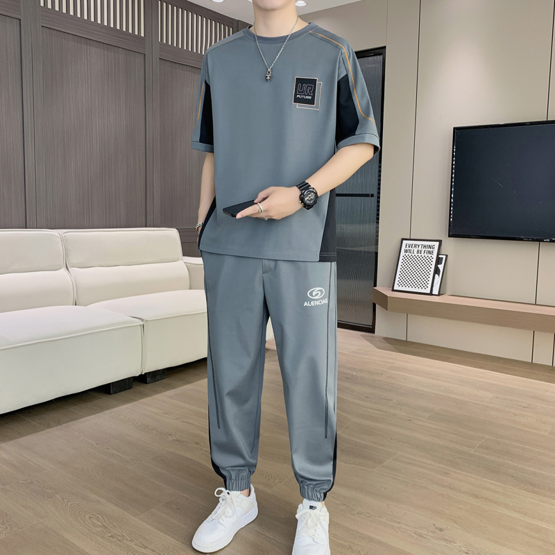运动服男短袖 青少年跑步休闲冰丝速干男装 长裤 2025新款 潮 套装 夏季