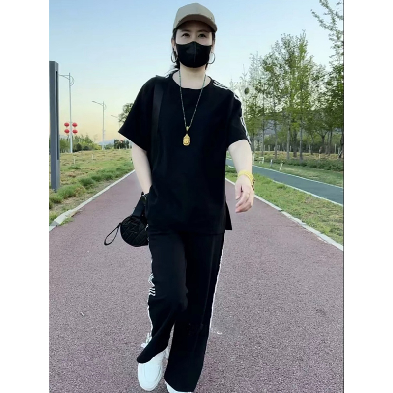 时尚 宽松显瘦减龄女装 休闲短袖 T恤阔腿裤 潮 2025夏季 运动套装 新款