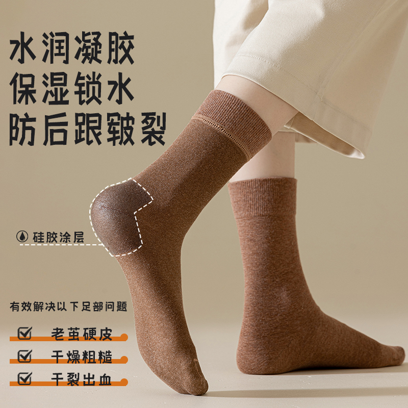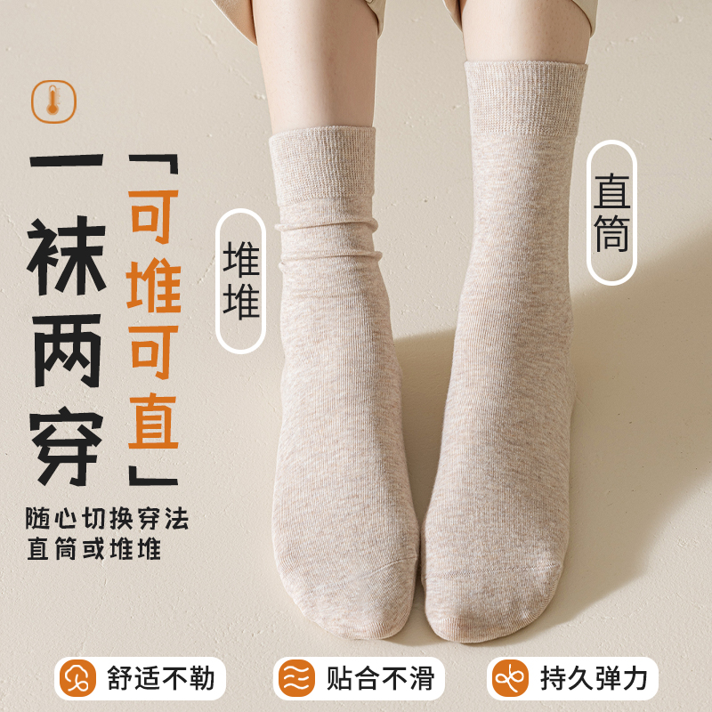 棕咖色月子长袜 乐福鞋 木耳边堆堆袜子女秋冬季 纯棉中筒袜配小皮鞋