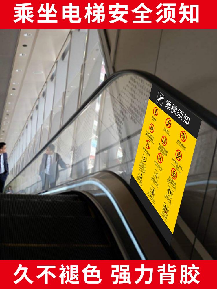乘坐电梯安全须知自动扶梯安全标识牌商场超市安全警告警示标语标识乘坐扶梯注意事项乘坐扶梯安全须知