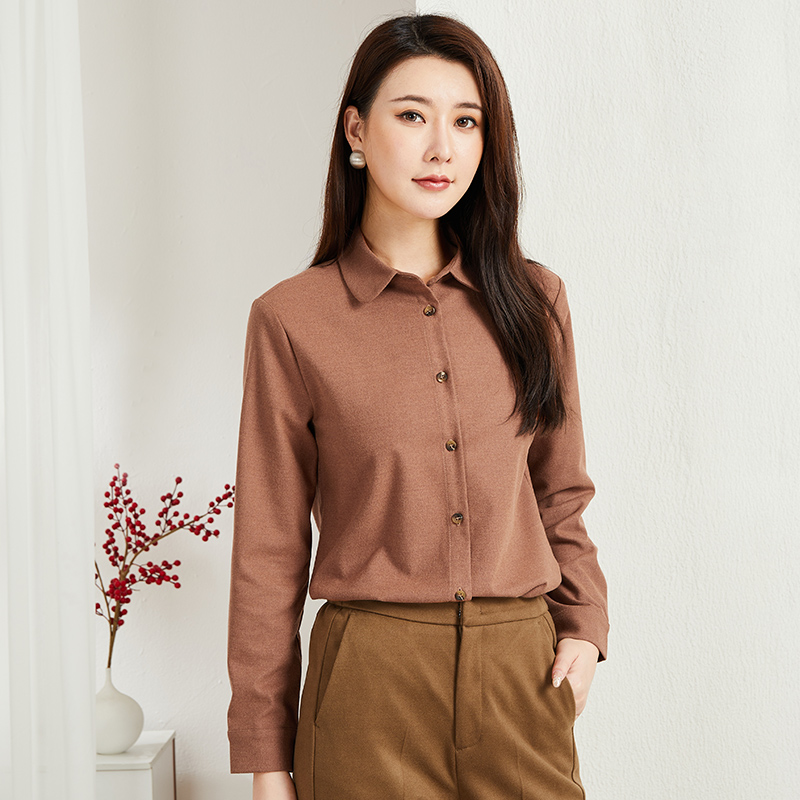 璐丝百丽磨毛拉绒纯色高端时尚 女洋气小众衬衣 上衣春秋气质衬衫