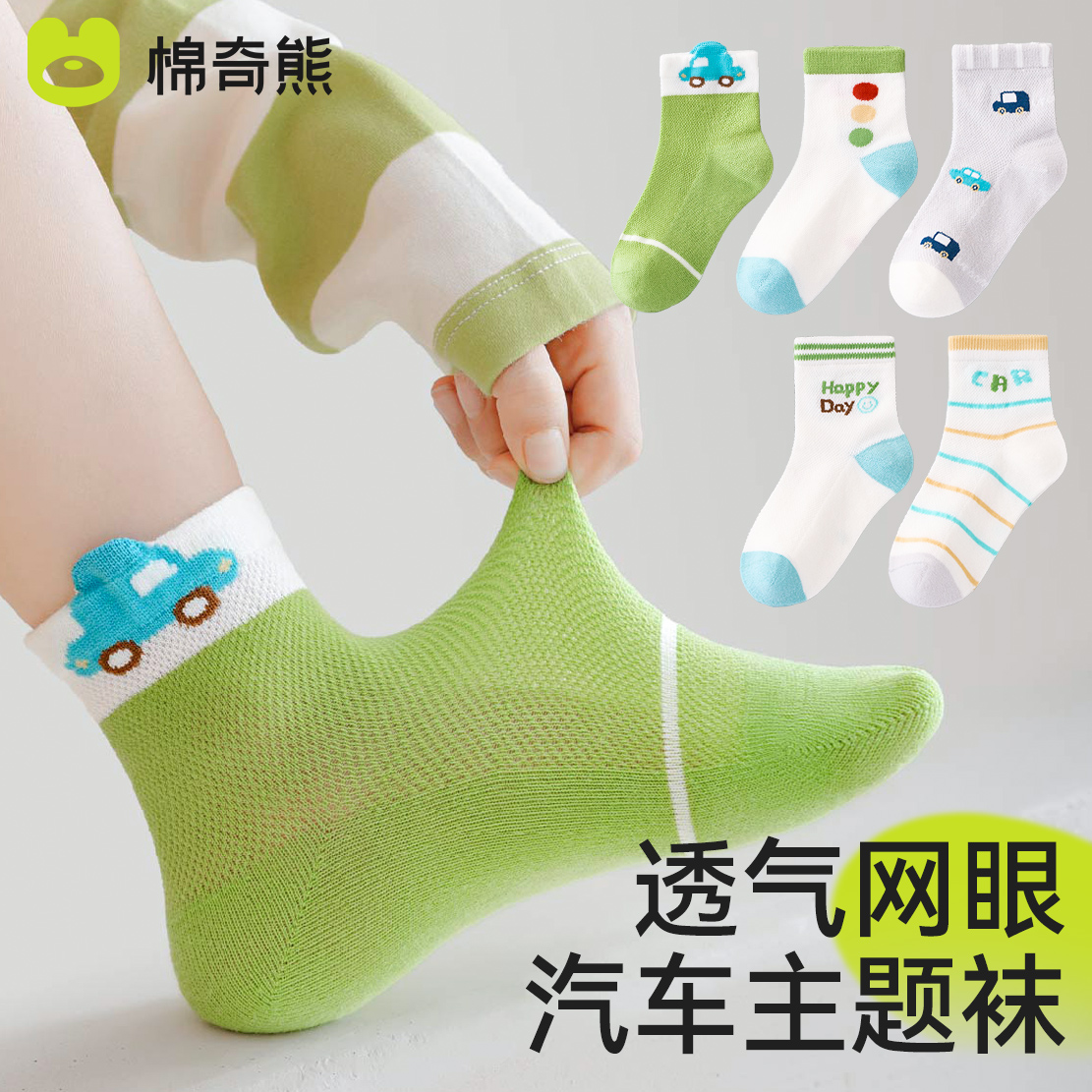 棉奇熊儿童袜子男童宝宝夏季 男宝卡通汽车网眼薄棉袜 短袜春秋薄款