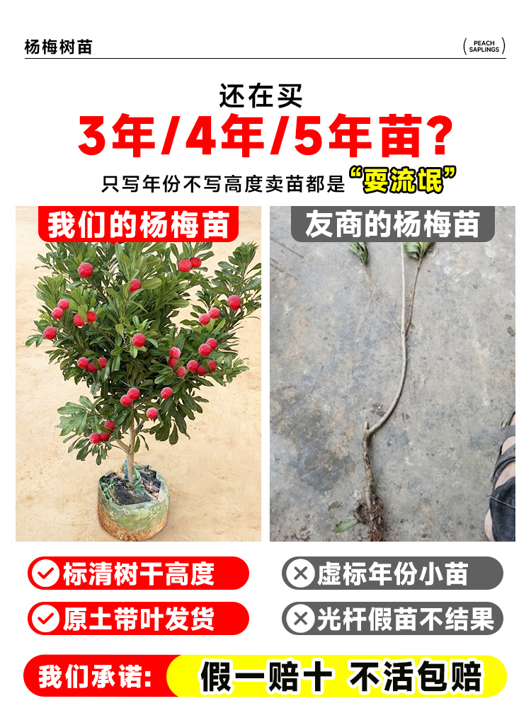 杨梅树树苗带土南方嫁接水晶果树果苗早熟大东槐当年结果