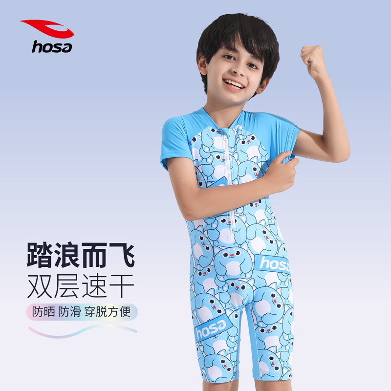 hosa浩沙儿童游泳衣女童连体防晒中大童宝宝2025新款 男孩专业泳装