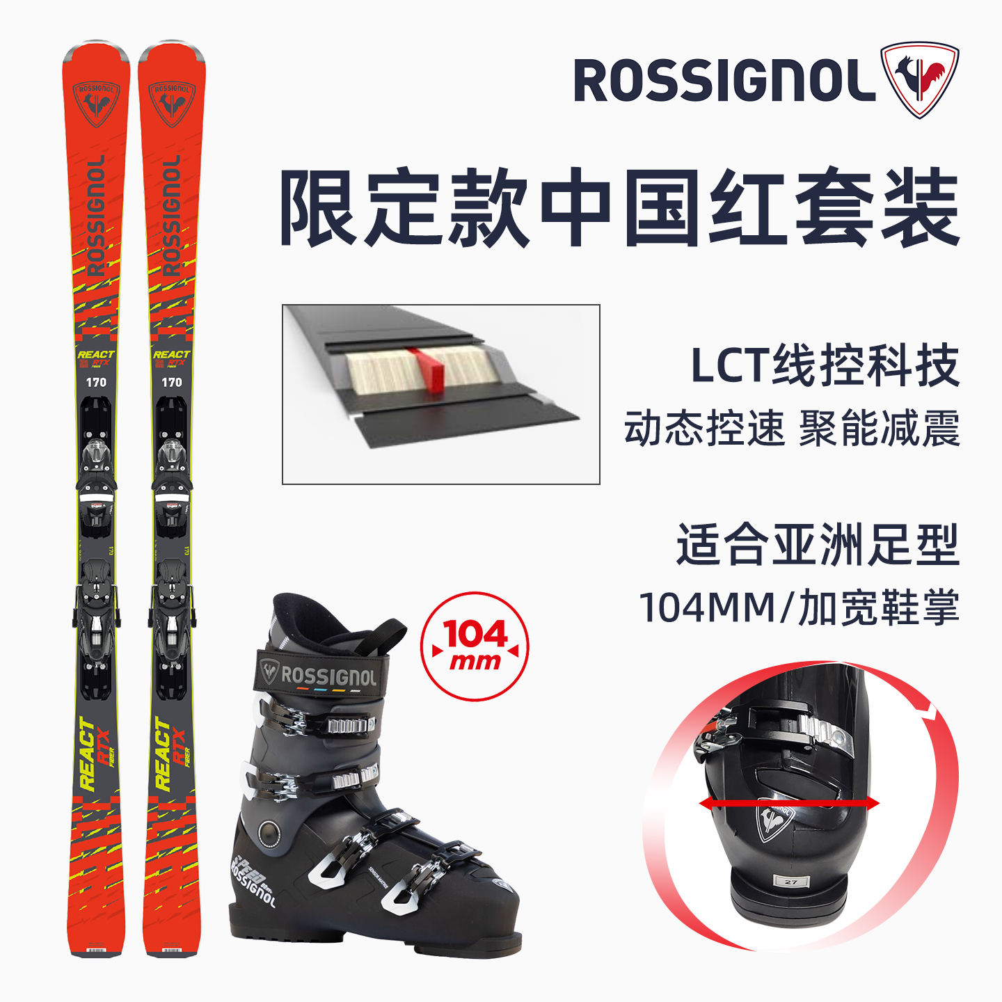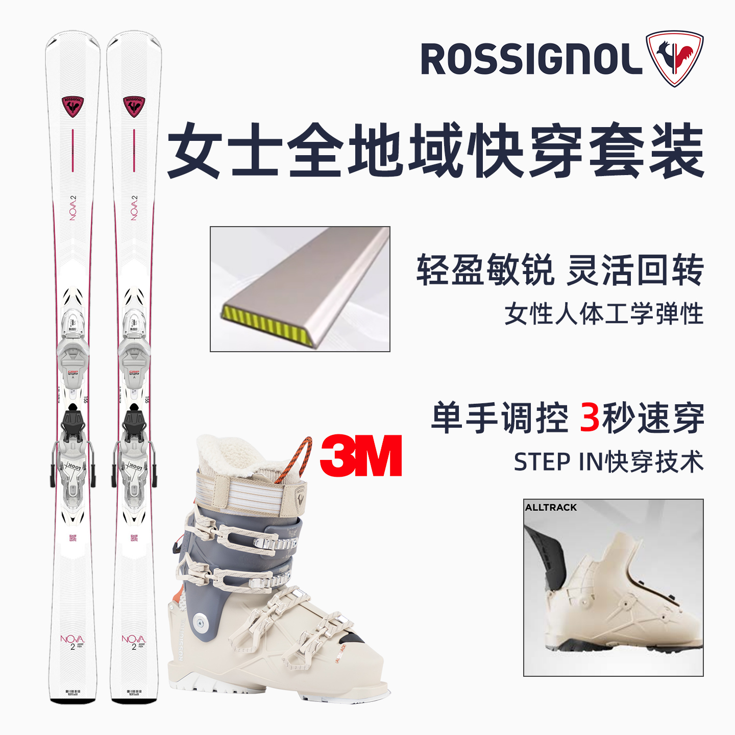 备 初中进阶双板滑雪装 ROSSIGNOL金鸡滑雪板双板套装 男女双板雪鞋