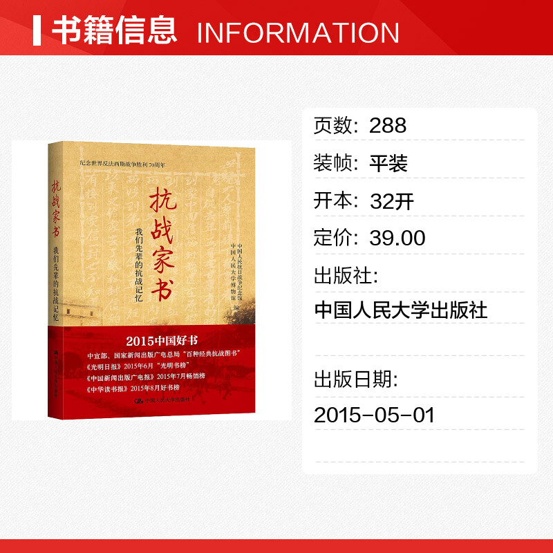 中国人民抗日战争纪念馆 中国人民大学博物 编 抗战家书 新华书店正版 抗战记忆 历史知识读物社科 图书籍 我们先辈
