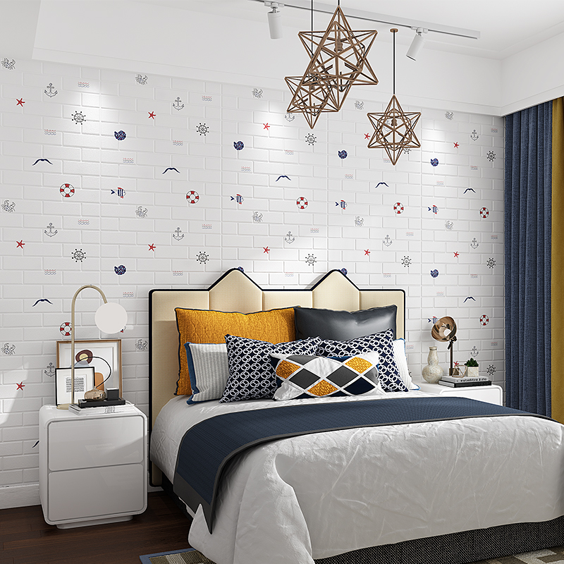 3d立体自粘墙纸卧室客厅墙贴卡通儿童房壁纸防水防潮泡沫砖纹贴纸