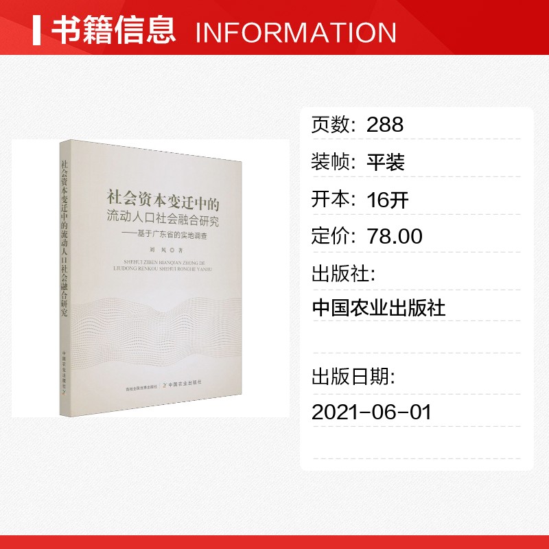 励志 社 实地调查 中国农业出版 图书籍 新华书店正版 社会学经管 著 刘风 流动人口社会融合研究——基于广东省 社会资本变迁中