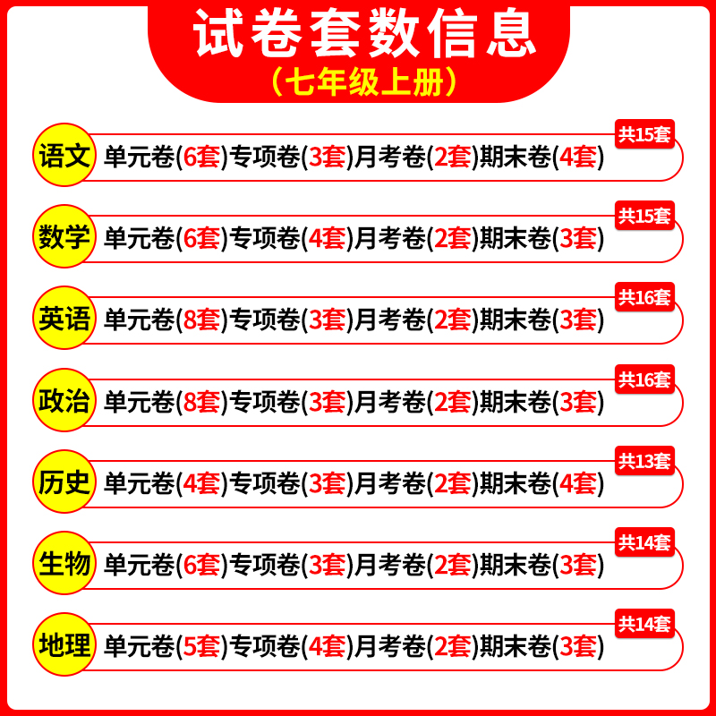 7下必刷题练习册 试卷 2025 初中同步测试卷语文数学英语政治历史地理生物全程测评全能期末综合单元 初一七年级上册全套试卷人教版