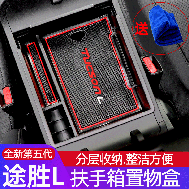 现代途胜L扶手箱置物盒储物盒中控隔层收纳盒内饰改装 适用21 25款