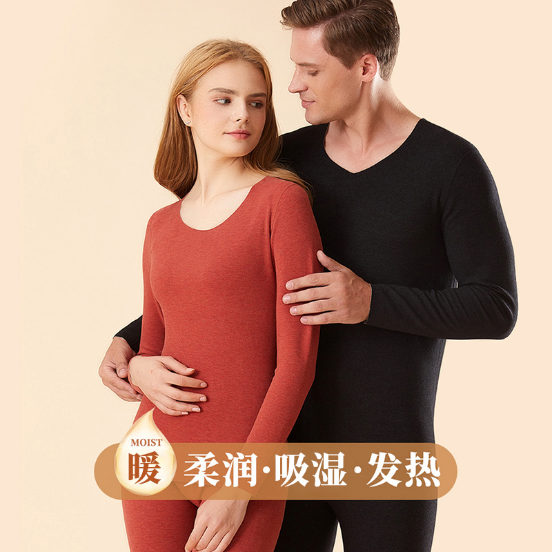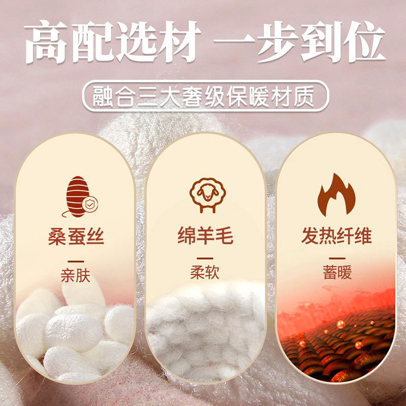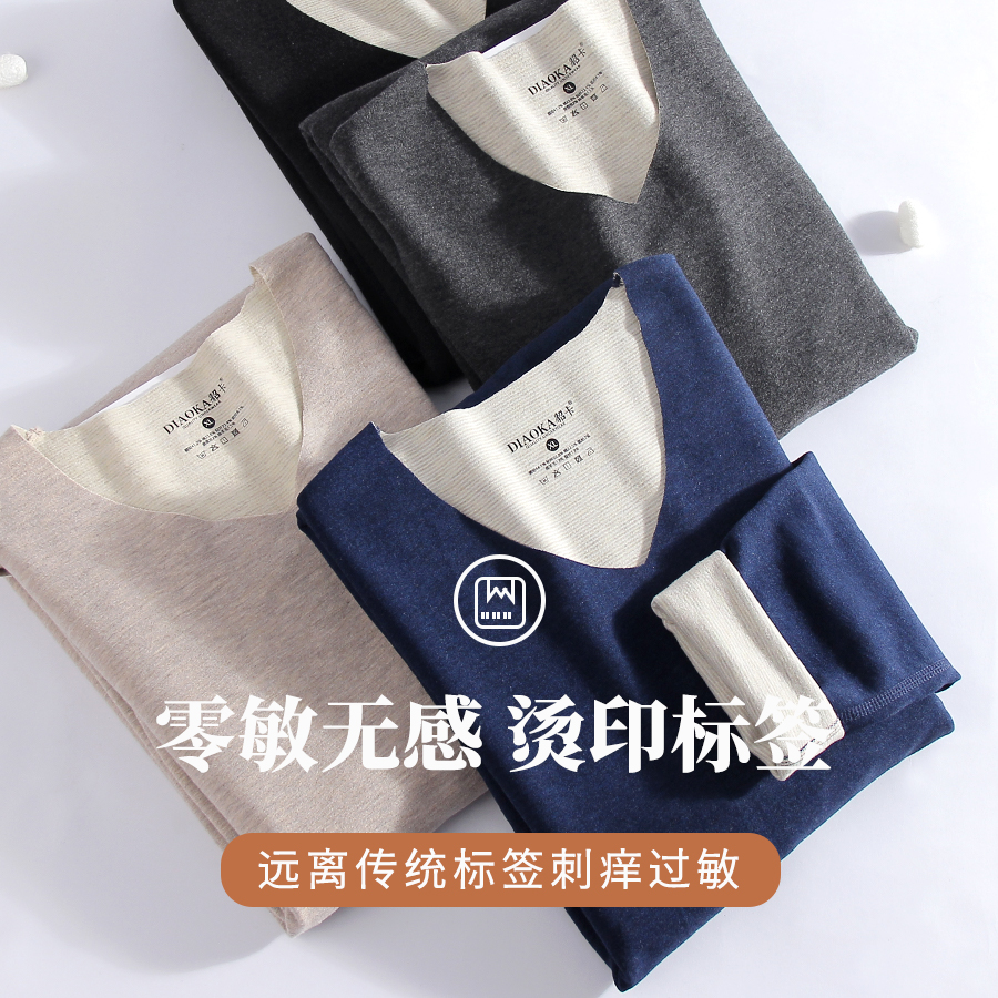 貂卡蚕丝羊毛无痕超保暖内衣套装 男v领磨毛发热德加绒加厚打底衫