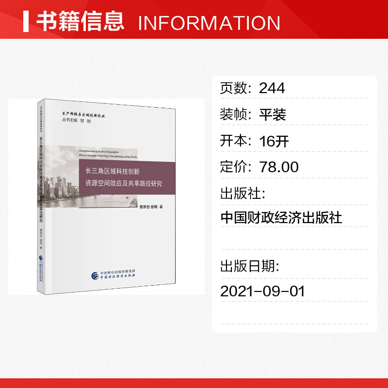 著 经济理论经管 中国财政经济出版 曹贤忠 社 图书籍 曾刚 新华书店正版 长三角区域科技创新资源空间效应及共享路径研究 励志