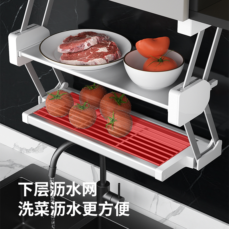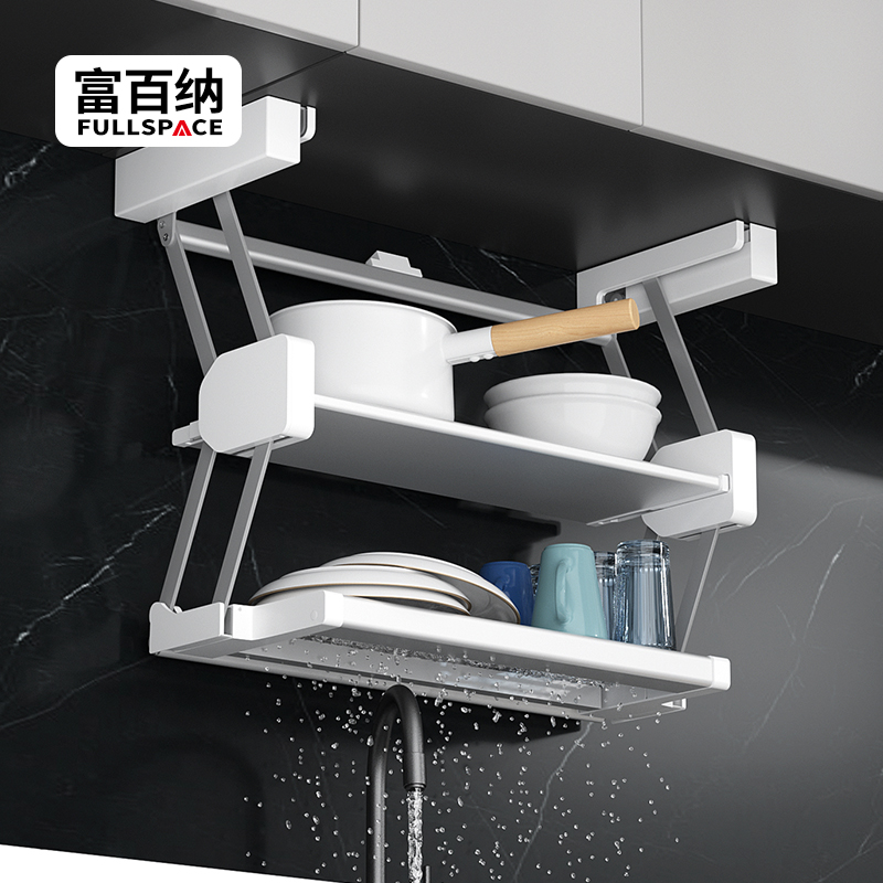 富百纳厨房备菜备餐置物架吊柜下拉可折叠储物架伸缩收纳沥水架