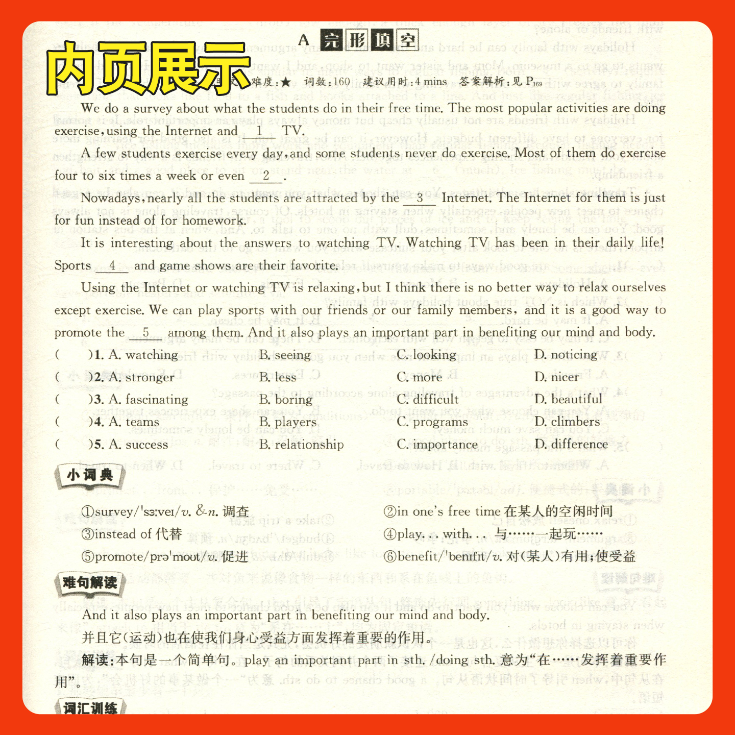 1七八九年级上册下册初一二三英语阅读理解 补全短文 首字母填空 选词填空 完成表格组合训练 完成对话 英语周计划阅读与完形填空2