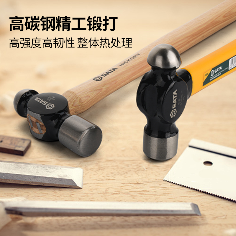 圆头锤木柄铁锤子奶锤木工工安装 锤榔钢头家用锤子具锤小敲击铁锤