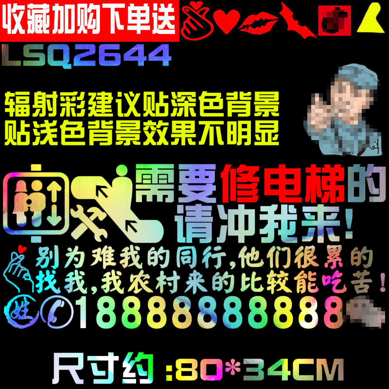 个性 网红同款 创意电梯维修广告汽车文字定制贴纸 修电梯车贴 卓鹿