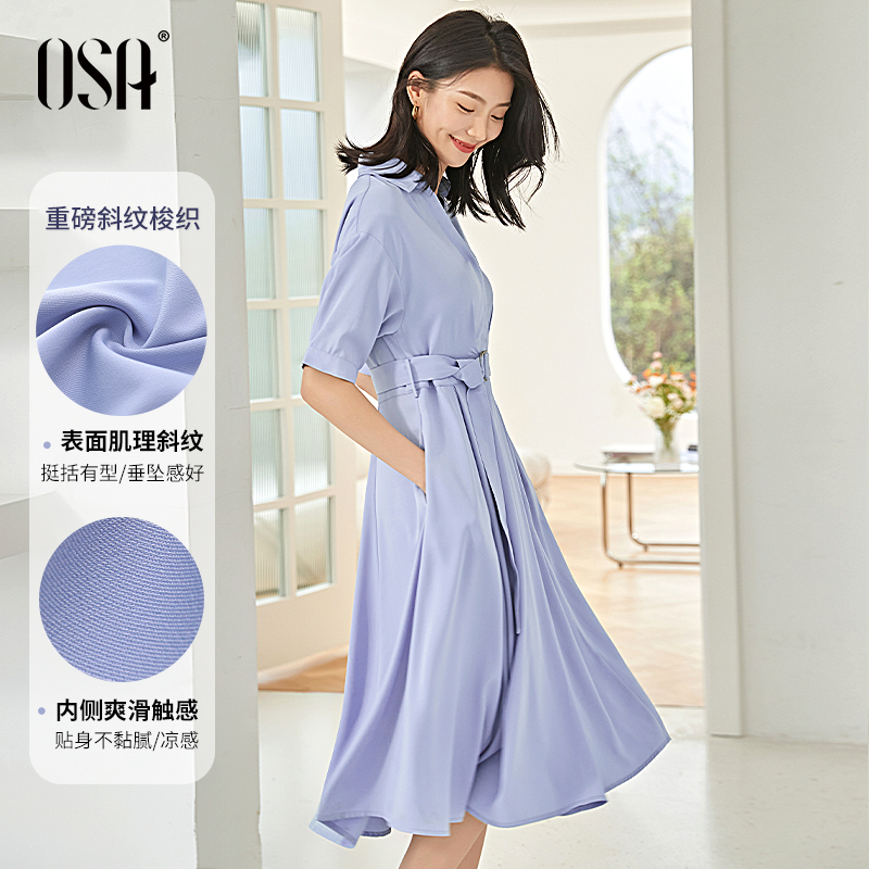 A子中长裙子 式 紫涵撞色披肩连衣裙女秋冬新款 复古休闲风高腰衬衫