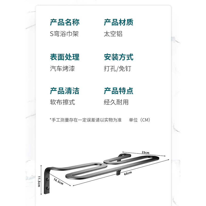 枪灰创意简约毛巾架卫生间实心加厚浴室置物架轻奢厕所家用浴巾架