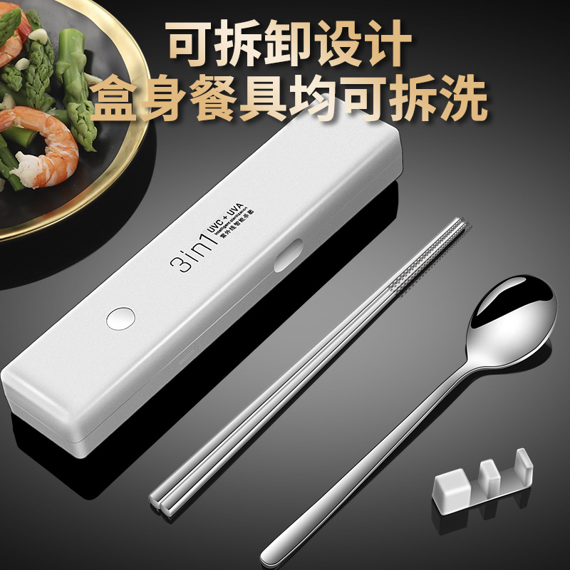 消毒餐具收纳盒子便携筷子勺子套装 学生上班族外带智能紫外线杀菌