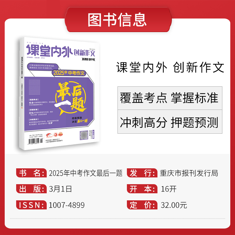 押题素材 最后一题一篇作文决胜中考 中考教辅 优秀满分热点作文素材 备战2025新中考 2025课堂内外创新作文 作文素材 中考作文