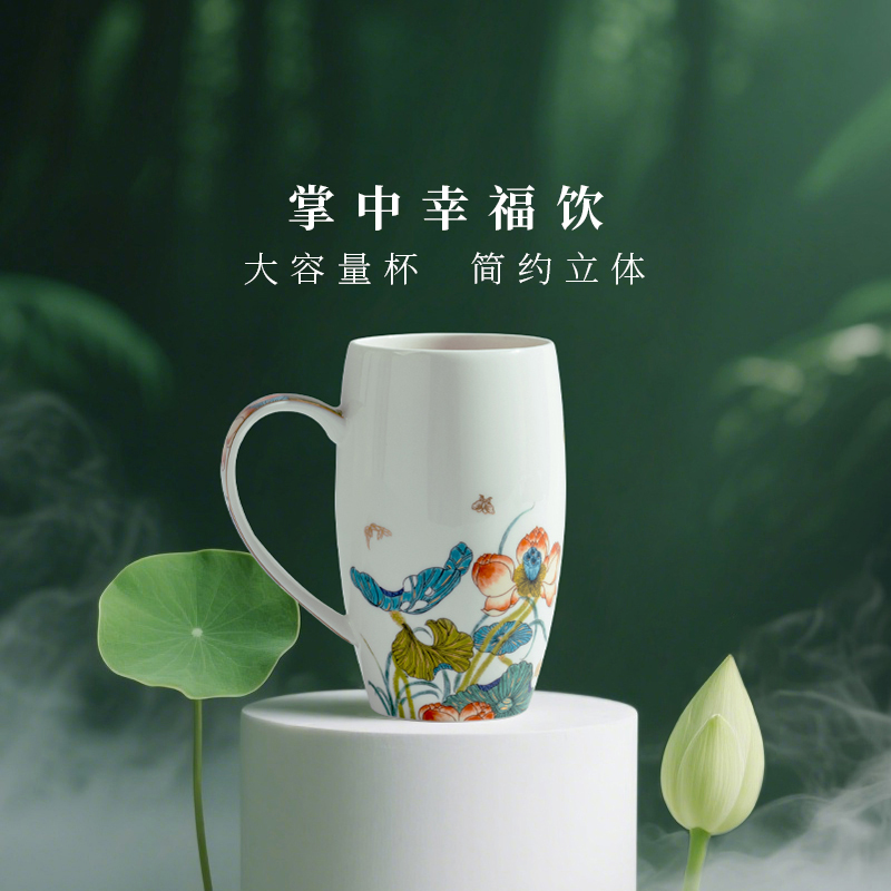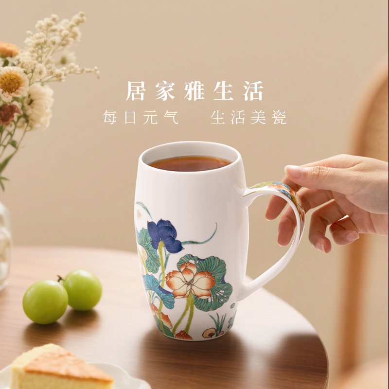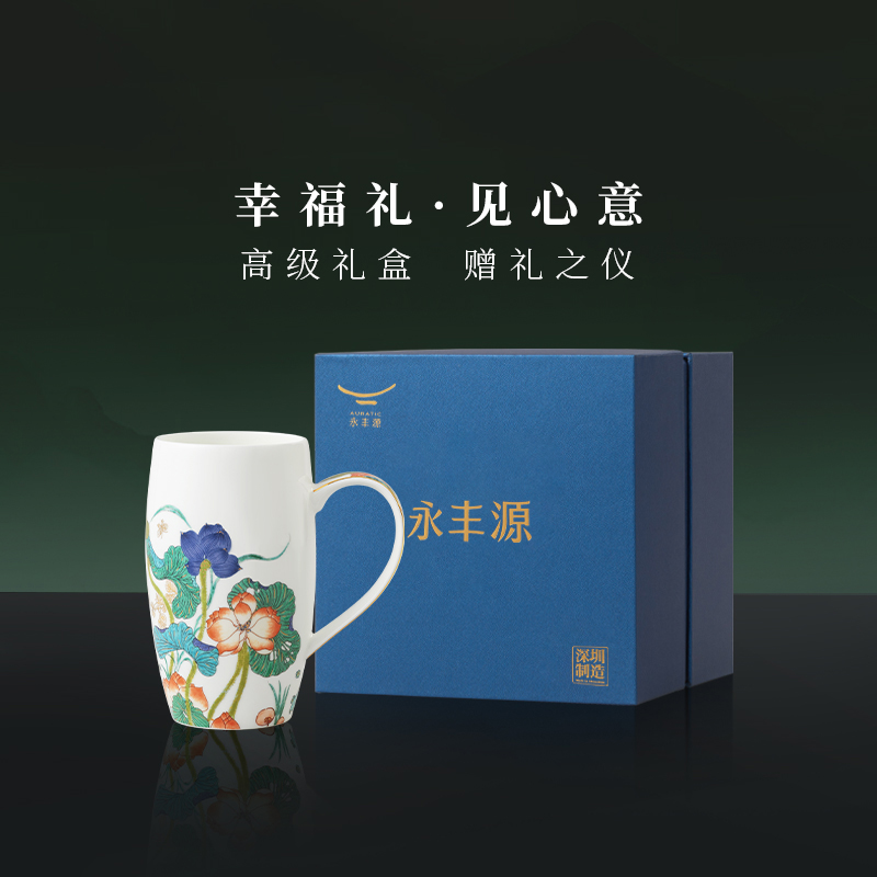 国瓷永丰源幸福和鸣马克杯600ml 陶瓷水杯茶杯家用送礼高档礼盒装